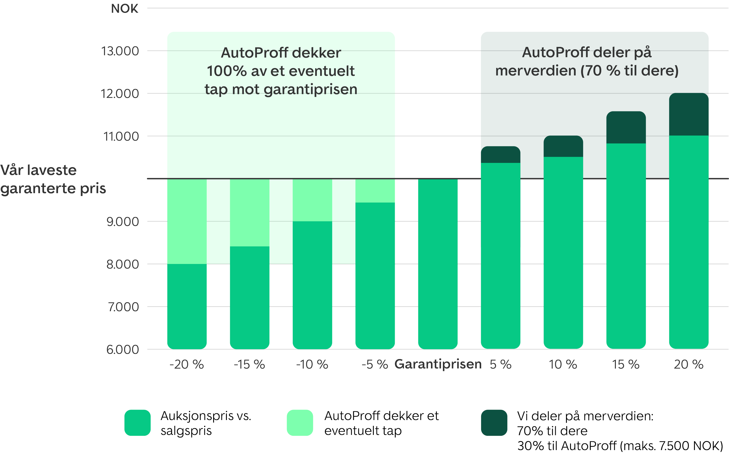 Samme pris uavhengig av varighet: Fordelingen av overskuddet mellom selgeren og AutoProff forblir den samme, enten du ber om en garantert pris for 14 eller 30 dager.