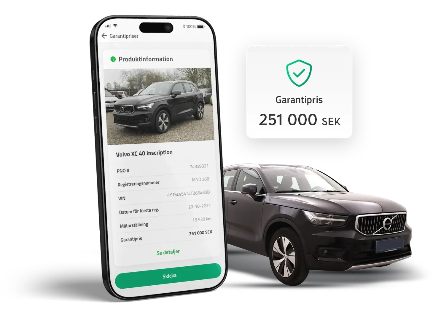 I løpet av bare 40 minutter sender vi deg en garantert minstepris for dine innbyttebiler.
